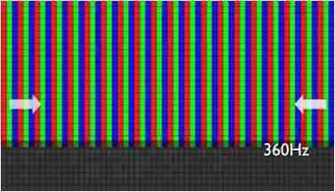 传统液晶驱动是从左到右单向进行,,在画面更新速度愈来越愈快的情况下,,,,位于驱动线路末端的右下角区域,,画素的闸极来不及在短时间内获得足够电压,,,无法显示出正确的颜色资讯。。
