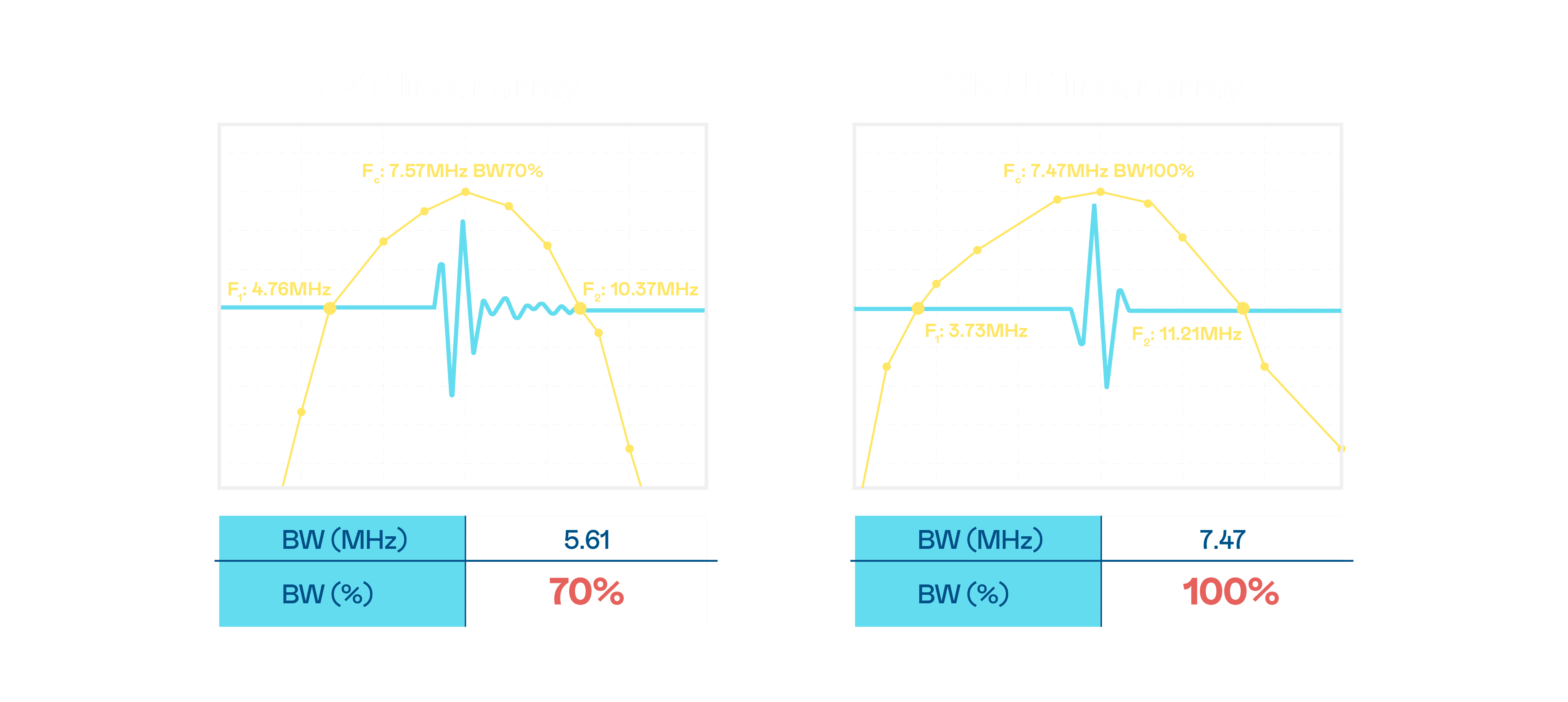 超音波影像的解析度高低,,,,首先取决于探头能发出的讯号频宽。。。万利 CMUT 可提供高清晰的超音波讯号,,,提供高频宽、、高灵敏度、、、影像纹理细节更高的超音波影像,,,协助医护人员缩短影像判读时间及利用精准的医疗影像进行诊断。。。。